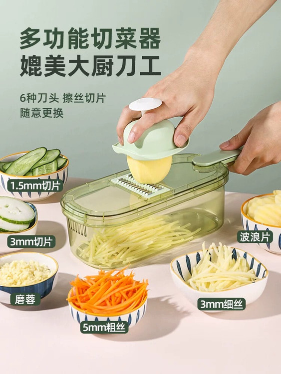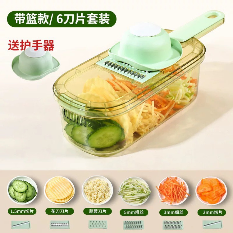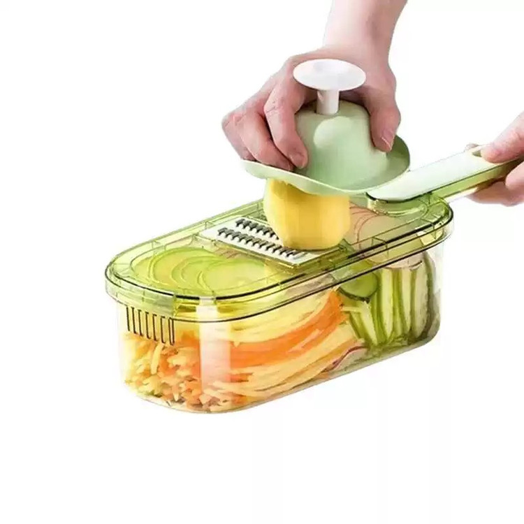 این رنده دارای ۶ مدل برش و یک دسته برای گرفتن میوه جهت محافظت از دست در مقابل تیغه های تیز می باشد