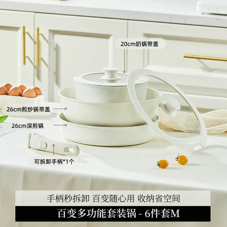 سرویس ۶ تکه قابلمه کاروت دارای دو تابه و یک قابلمه با دسته سیار می باشد که قابلیت اتصال به تمامی ظروف کاروت را دارد.