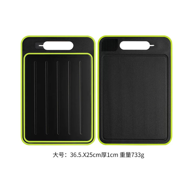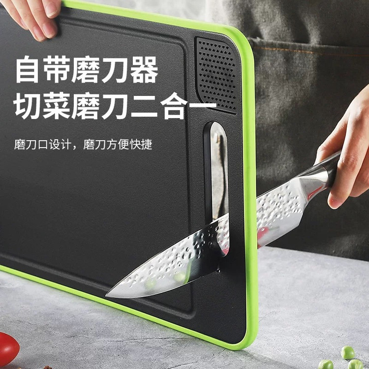 با این سینی برش 3 کاره می توانید سیر را له کرده چاقوي آشپزخانه خود را تیز کنید گوشت و مرغ یخ زده روی سطح این سینی برش زودتر آب می شوند و هنگام برش بدلیل طراحی زیبا آب دور سینی جمع شده و به پایین چکه نمی کند.